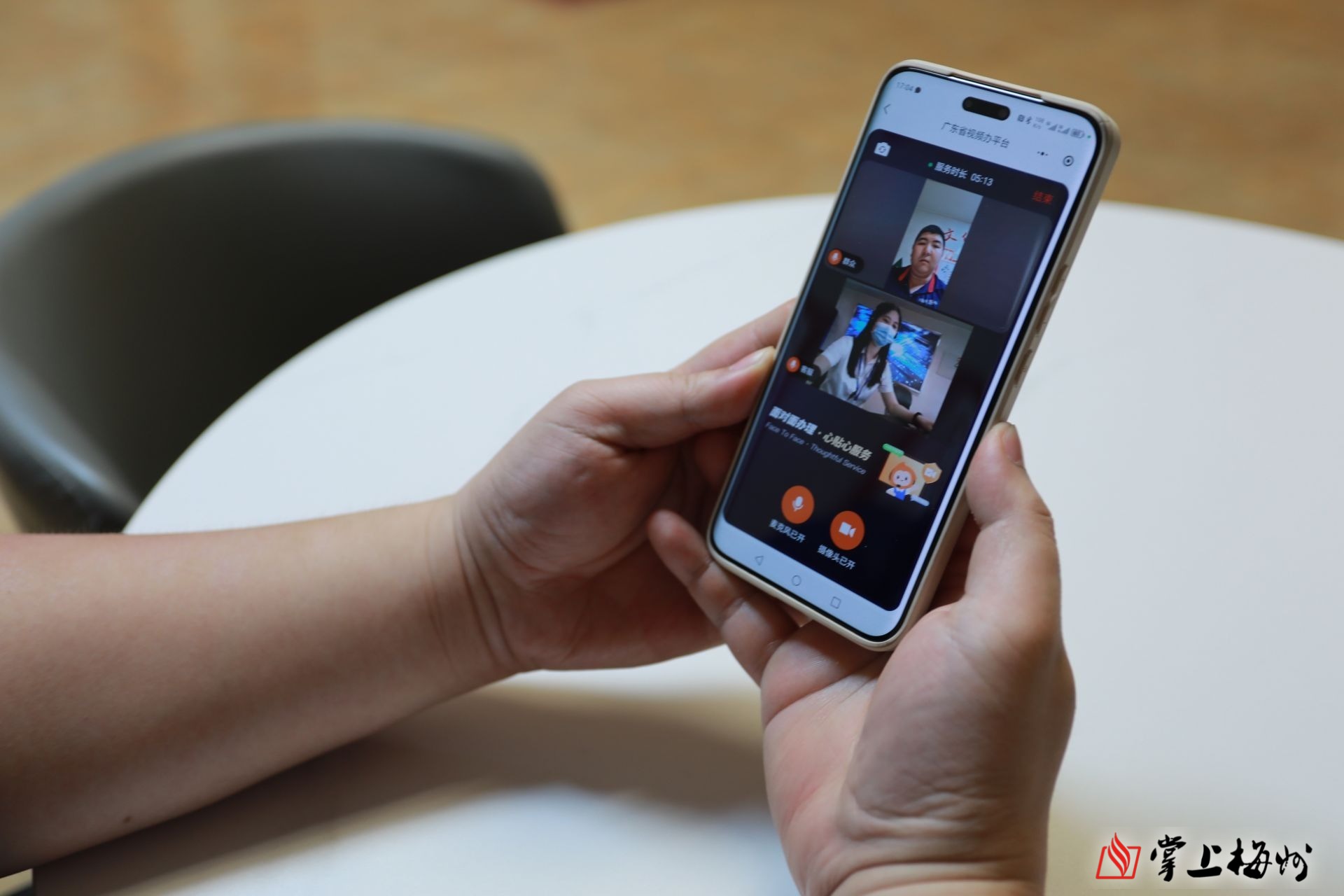 “我們打開粵省事APP/微信小程序,確認首頁左上角辦事城市為‘梅州’后,點擊‘視頻辦’;進入‘視頻辦’專區(qū),點擊‘立即辦理’;選擇區(qū)域‘梅州市—梅縣區(qū)’;選擇您所需辦理的事項,填寫個人信息,并選擇預約時間;在預約服務時間段進入‘視頻辦’服務專區(qū),點擊‘立即報到’后等待叫號,到號點擊‘連線客服’,即可接入視頻連線客服辦事?!泵房h區(qū)政務服務和數據管理局工作人員一邊操作手機一邊向記者介紹道。