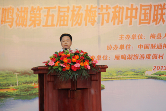 本月19日,在國(guó)家AAAA級(jí)旅游景區(qū)雁鳴湖旅游度假村隆重舉行梅州市慶?!爸袊?guó)旅游日”暨雁鳴湖第五屆楊梅節(jié)和中國(guó)聯(lián)通“旅游梅州”移動(dòng)客戶端正式上線啟動(dòng)儀式。本次活動(dòng)由梅縣人民政府、梅州市旅游局主辦,中國(guó)聯(lián)通梅州市分公司、廣東華銀集團(tuán)協(xié)辦、雁鳴湖旅游度假村、梅縣靈光寺旅游區(qū)、梅縣中國(guó)旅行社承辦。