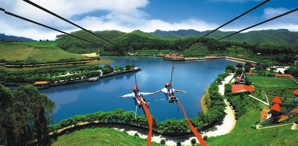國家4A級景區(qū)、全國農(nóng)業(yè)旅游示范點(diǎn)、國家森林公園,位于梅縣區(qū)雁洋鎮(zhèn)南福村,景區(qū)面積1.1萬畝,由自然山巒、生態(tài)林區(qū)、果園、人工湖、人文景觀、高爾夫球場、休閑度假設(shè)施、南藥生產(chǎn)基地八大部分組成,屬丘陵地貌,主要特點(diǎn)是突出休閑度假與養(yǎng)生保健主題。景區(qū)由廣東華銀集團(tuán)有限公司于1996年8月投資開發(fā),2001年9月27日開業(yè)。景區(qū)按春夏秋冬四季輪回的概念,興建“春暉園、夏曉園、秋實(shí)園、冬融園”四大功能園區(qū),種植水果3500畝、造林3000畝、水產(chǎn)養(yǎng)殖800多畝、種有各種南藥1100多畝,為全國最大的南藥生產(chǎn)基地。主要景點(diǎn)和設(shè)施有人工湖、滑草場、游泳池、溢香坊、益壽廊、童趣園、娛樂城、鐵索橋、網(wǎng)球場、道南庵、鳳凰閣、百藥園、山莊別墅、銀湖半島、文化長廊、康體中心、會議中心、森林公園、開心農(nóng)場、銀湖賓館、銀湖大酒店、高爾夫球會所等。度假村傍山依水,規(guī)模宏大,景觀眾多,風(fēng)光秀麗,環(huán)境幽雅,為游覽觀光、休閑度假和養(yǎng)生保健一大勝地。