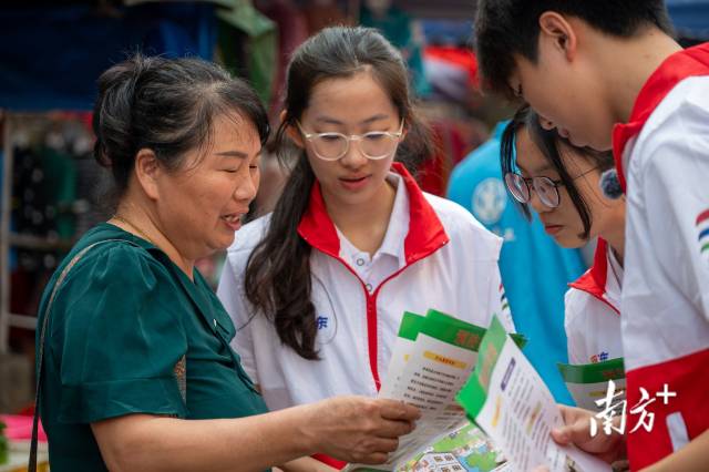 實(shí)踐不止于調(diào)研,更在于服務(wù)民生。針對(duì)盛夏蚊蟲隱患,青衿逐風(fēng)突擊隊(duì)成員積極投身登革熱和基孔肯雅熱防控宣傳工作。隊(duì)員們提前整理預(yù)防知識(shí)手冊(cè),深入圩鎮(zhèn)街道,向商戶、村民發(fā)放資料。他們將“清除積水防蚊孳生”“正確使用驅(qū)蚊用品”等核心要點(diǎn)轉(zhuǎn)化為通俗易懂的方言講解,示范家庭防蚊技巧,讓防控意識(shí)深入人心。這場(chǎng)志愿服務(wù)不僅為“美麗石坑”筑牢了衛(wèi)生屏障,更讓青春力量融入鄉(xiāng)村治理,在與村民的親切交流中互動(dòng)中傳遞溫暖與擔(dān)當(dāng)。