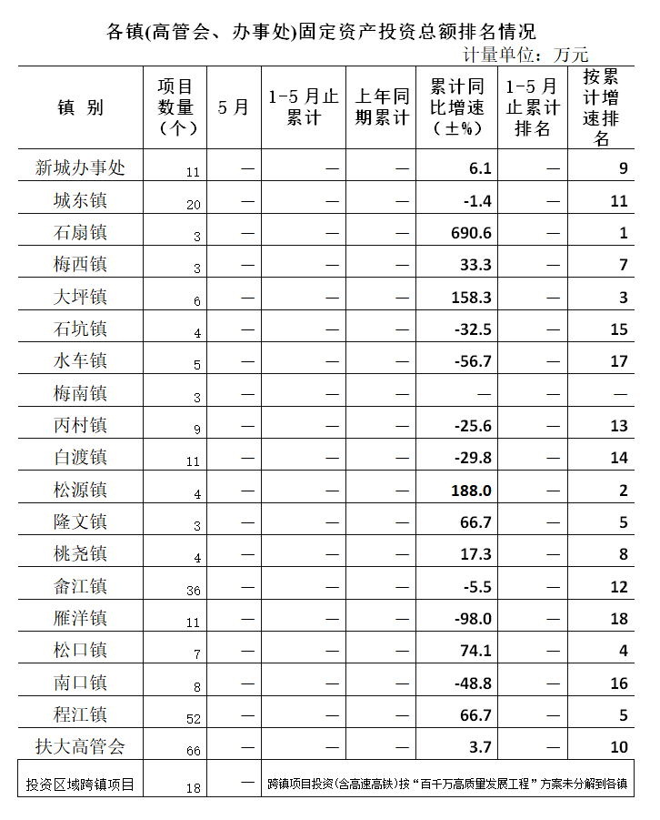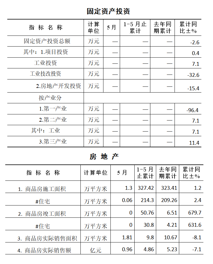 1-5月,全區(qū)固定資產(chǎn)投資同比下降2.6%。其中:項(xiàng)目投資同比增長0.4%;項(xiàng)目投資中,工業(yè)投資同比增長7.1%;技改投資同比下降32.6%;房地產(chǎn)投資同比下降15.4%。