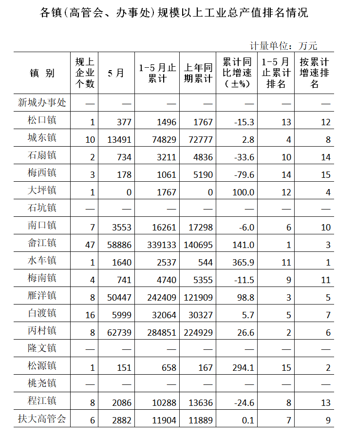 從園區(qū)角度看:1-5月,梅縣產(chǎn)業(yè)園區(qū)共有規(guī)上工業(yè)企業(yè)38家,實(shí)現(xiàn)工業(yè)總產(chǎn)值33.36億元,比去年同期增長61.1%;園區(qū)共有規(guī)上工業(yè)企業(yè)37家,實(shí)現(xiàn)工業(yè)總產(chǎn)值32.87億元,比去年同期增長147.6%。