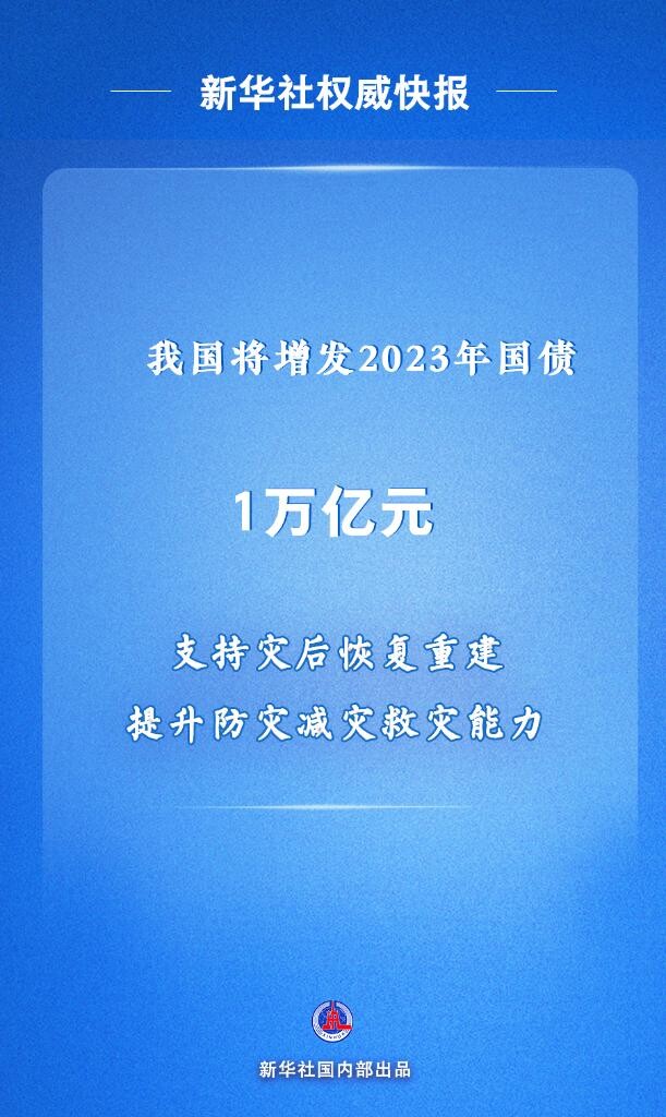 “增發(fā)2023年國債,是黨中央、國務(wù)院作出的重大決策部署,是踐行以人民為中心發(fā)展思想的重要舉措。”財政部有關(guān)負(fù)責(zé)人表示,以強有力的資金保障有關(guān)工作落實,集中力量支持災(zāi)后恢復(fù)重建和彌補防災(zāi)減災(zāi)救災(zāi)短板,整體提升我國抵御自然災(zāi)害的能力。
