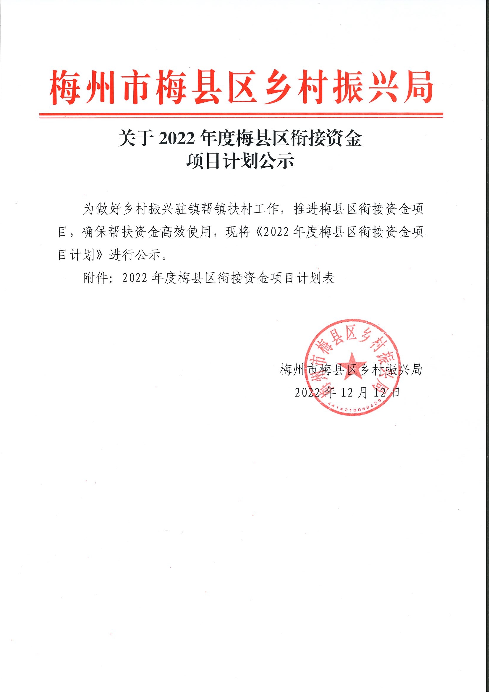 關于2022年度梅縣區(qū)銜接資金項目計劃公示