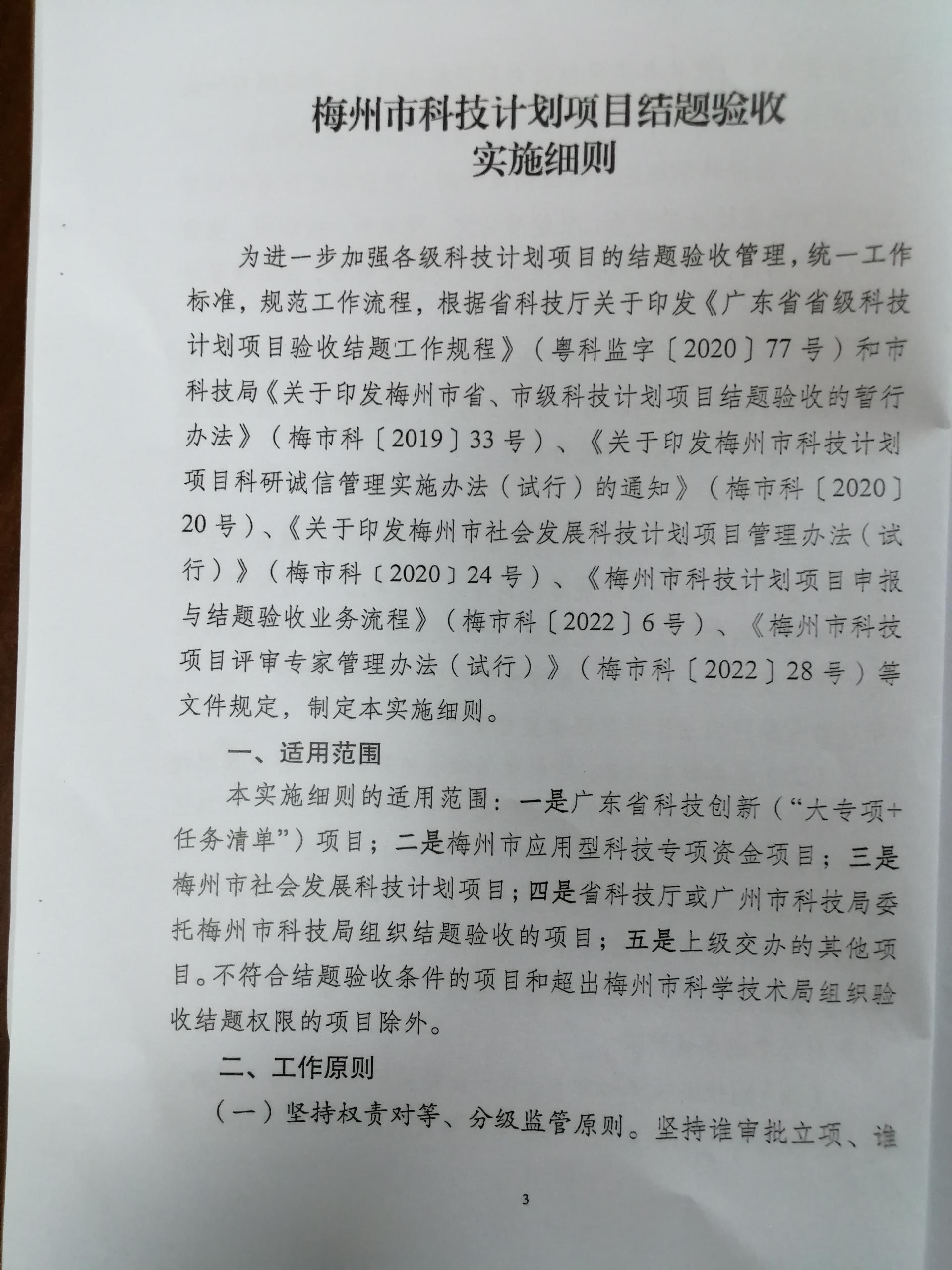 關(guān)于印發(fā)《梅州市科技計劃項目結(jié)題驗收實施細(xì)則》的通知